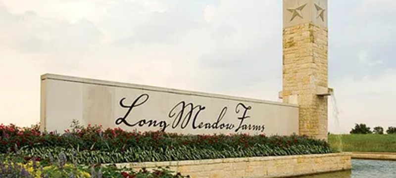 Covering more than 1,400 acres, Long Meadow Farms is known for its mature landscaping, winding creeks, and established neighborhood feel. Homes range from the $350s to the $700s, offering both new construction and resale options.